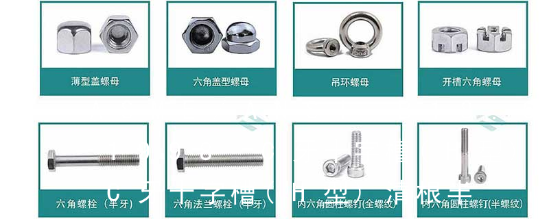 B.S.W. 標(biāo)準(zhǔn)惠氏粗牙系列,一般用途圓柱螺紋(英制牙)B.S.F. 標(biāo)準(zhǔn)惠氏細(xì)牙系列,一般用途圓柱螺紋 (英制牙)fine pitch thread 細(xì)牙full thread 全螺紋 IHH=ind hex head 鋸 六角頭PH=phillips 十字槽Pan 圓頭(盤頭)Oval 半沉頭