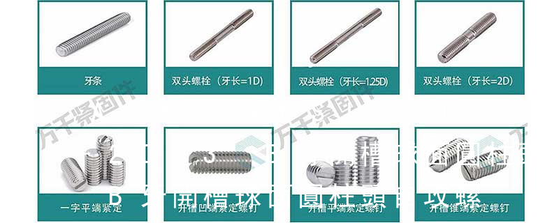 1)開槽普通螺釘多用于較小零件的連接。它有盤頭螺釘、圓柱頭螺釘、半沉頭螺釘和沉頭螺釘。盤頭螺釘和圓柱頭螺釘?shù)尼旑^強(qiáng)度較高,瑁在普通的部件連接上;半沉頭螺釘?shù)念^部呈弧形,安裝后它的頂端略外露,且美觀光滑,一般